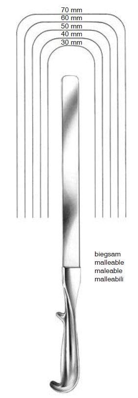 Spatelvormige wondhaken en retractors, al dan niet vormbaar (malleabel)
